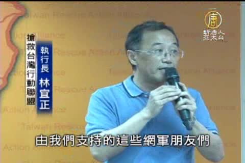 搶救台灣行動聯盟執行長林宜正:「由我們支持的這些網軍朋友們,透過這些網誌,積極的跟各地的網友做連結,走上街頭反ECFA要公投。」