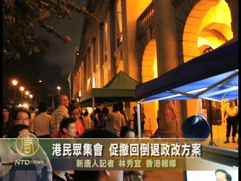 【新唐人2010年6月19日訊】星期四香港政改辯論當日,近千名香港民眾在立法會外集會,要求港府撤回倒退的政改方案。有學者指這次辯論促使更多港人不支持政府的方案,不信任港府和北京。