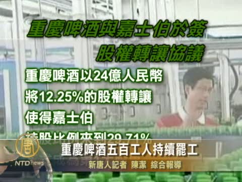 【新唐人2010年6月20日訊】重慶啤酒公司500多名工人,週四起開始罷工,這是由於重慶啤酒將部分股份轉讓給外資股東,工人擔心自身權益將受到損害,因而計劃罷工到得到滿意答復為止。