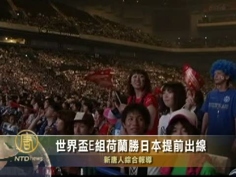 【新唐人2010年6月20日訊】6月19日,世界盃小組賽E組第2輪荷蘭隊和日本隊之間的角逐當地時間下午1點30分在德班球場展開。上半場雙方均無建樹。下半場第53分鐘,荷蘭隊打破僵局,斯內德左側距門20米處右腳大力抽射,打進全場比賽的唯一一個進球。荷蘭1比0戰勝日本,取得小組賽兩連勝,並率先打入第二輪。