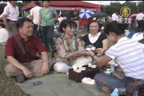現場集合茶藝愛好人士共有400個茶席,有上千民眾一同品茗。冷茶、熱茶、熟茶、生茶,各種名茶紛紛出籠,許多民眾各依所好聞香品茗。