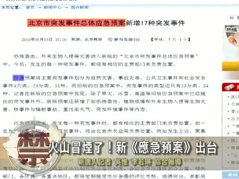 【新唐人2010年6月21日訊】北京發佈實施新修訂的《北京市突發事件總體應急預案》 採取行政領導負責制,將官員政績與他們對突發事件的處置掛鉤。政治觀察人士認為,這說明中國目前的社會猶如瀕臨爆發的火山,但新修訂的《應急預案》無法達到中共的維穩意圖。