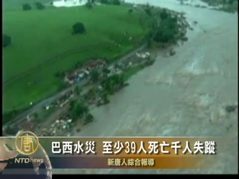 【新唐人2010年6月22日訊】巴西東北部連日豪雨成災,洪水氾濫,已導致至少39人死亡,還有1000多人失蹤,電力、水源和通訊中斷,成千上萬人無家可歸。巴西政府已宣佈當地進入緊急狀態,全力投入救災。