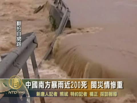 【新唐人2010年6月22日訊】根據22號中共官方的最新統計,中國南方連日來暴雨成災,已造成將近200人喪生。其中,福建泰寧縣災情慘重,傷亡人數超過一百人,而且對外交通中斷,出現斷糧危機。