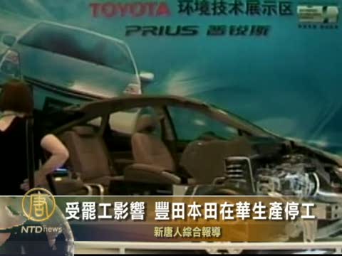 【新唐人2010年6月23日訊】日本豐田和本田汽車製造公司, 星期三(23日)分別證實,由於設在中國的汽車零部件工廠發生罷工,豐田和本田在華主要的組裝廠生產線已被迫停產。