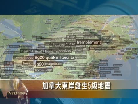 【新唐人2010年6月24日訊】美東時間,星期三(23號)下午1點41分,加拿大魁北克省,渥太華以北大約61公里處發生5級地震。美國地質勘探局表示,震源深度19.2公里,是該地區近20年來最強烈的地震,北到加拿大的安省雷灣,遠至美國麻州、密歇根州,都有震感。目前還沒有傷亡報告。