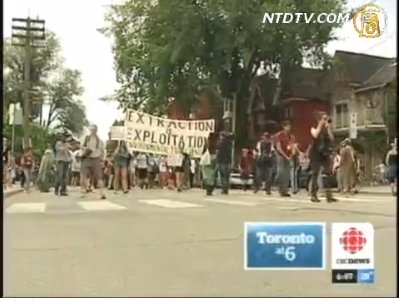 【新唐人2010年6月24日訊】這個星期,多倫多每天發生的抗議示威不斷,都是因為即將在這個週末召開的8國集團和20國集團峰會,今天(6月23日)在多倫多的市中心又有抗議活動發生。