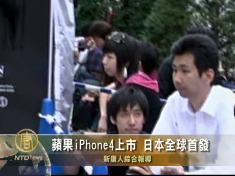 【新唐人2010年6月24日訊】蘋果的最新款手機iPhone4星期四上市,日本的蘋果迷在當地蘋果旗艦店和電信商軟體銀行商店外大排長龍,等待率先搶購。