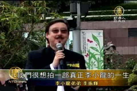 李小龍弟弟 李振輝:「自從小龍過世之後,我們很想拍一部真正的李小龍的一生,給大家知道,但一直沒有這個機會,我真的很開心,我今天很激動,今天我哥哥(指背後的雕像)也在這裡。」