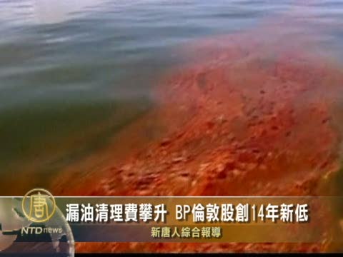 【新唐人2010年6月26日訊】墨西哥灣漏油事故清理費用攀升的消息,繼續拖纍英國石油公司BP的股票,促使BP的倫敦股價暴跌至14年來的新低。