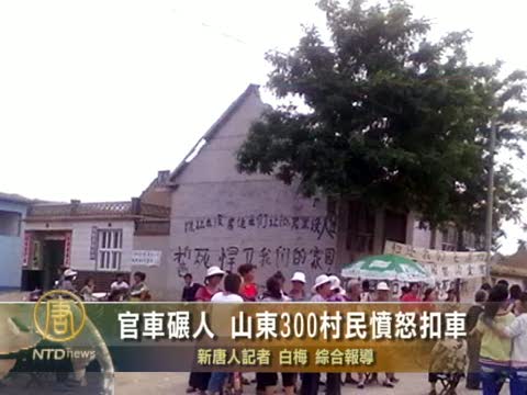 【新唐人2010年6月26日訊】山東省昌邑市圍子鎮日前發生突發事件,300多位手無寸鐵的村民,抵抗當地鎮政府的強拆,其中一位村民被車碾壓重傷,氣憤的村民扣押22輛政府車,要求政府給人民一個說法。