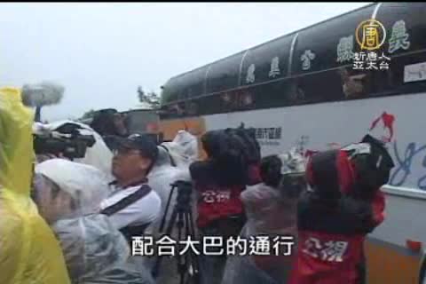 阿里山大巴通車囉!數十台大型遊覽車,搭載著「一人1300,愛上阿里山」專案的遊客們,為阿里山的觀光產業注入強心劑。雖然天空飄著雨,但是行政院長吳敦義、交通部長毛治國、嘉義縣長張花冠等貴賓們,仍然齊聚在阿里山森林遊樂區門口,按鈕正式宣告阿里山觀光列車啟動了。
