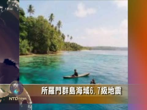 【新唐人2010年6月27日訊】南太平洋島國所羅門群島附近海域週六(26日),發生裡氏6.7級地震,美國地質勘探局的數據顯示,地震震中位於聖克里斯托瓦爾島西南55公里處,震源深度約35公里。