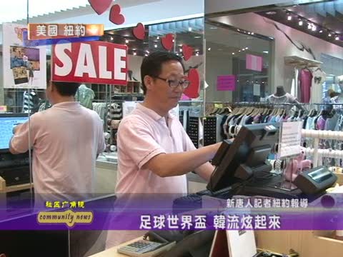 在南非世界盃上,韓國隊22日順利晉級,打入16強。在地球的另一端,居住在紐約的韓國人也是格外的開心。法拉盛的一家韓國時尚精品店老闆隨即宣佈,店裡的所有物品全部打半折,和更多人分享韓國隊的勝利。