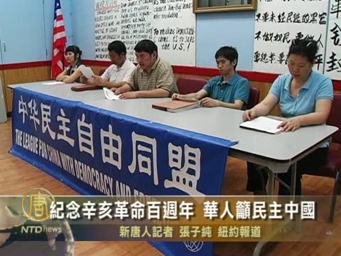 【新唐人2010年6月28日訊】紀念辛亥革命100週年委員會,今天(6月27日)中華民主自由同盟在紐約中華公所舉行報告會,宣告“辛亥革命一百週年系列今年活動”開始,請看報導。