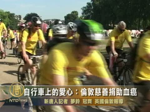 【新唐人2010年6月28日訊】自行車可以用作救助社會成員,表達愛心。6月27日,倫敦市近七千名自行車愛好者,在近30度的烈日下,以賽車的方式集資捐助白血病和淋巴瘤的研究所。請看本臺來自倫敦的報導。