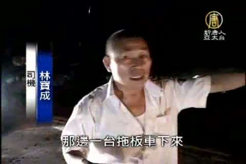 「從那邊來嘛,剛好有下雨,有下雨,雨下得很大,那邊一台拖板車下來,我已經走這邊了,你看,我(車子)的(路)線已經走這邊了,沒有很靠那邊,我如果再走那邊,整台車就都(翻)下去了。」