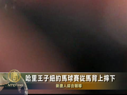 【新唐人2010年6月29日訊】英國哈里王子對馬球是情有獨鍾,但星期日(6月27日)在紐約慈善馬球賽上他不慎從馬背上摔了下來,幸運的是他並沒有受傷。