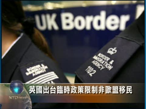 【新唐人2010年6月29日訊】英國內政部長特雷莎•梅星期一(6月28日)宣佈臨時法規,限定非歐盟國家技術工人的移民數量。從現在到明年4月,外國技術工人的移民數量將比去年同期下降5%。