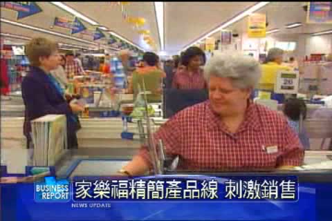 家樂福表示,正在進行食品選擇的精簡作業估計將減少15%的食品項目。家樂福是全球第2大零售業者,僅次於美國沃爾瑪,目前還沒有計畫精簡非食品部門的產品數目,未來將持續增加自有品牌的折扣產品,吸引精打細算的消費者。家樂福預定9月公布在法國231家量販店的整頓計畫,而量販店的銷售占總銷售金額的四分之一。