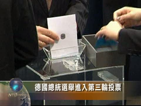 【新唐人2010年7月1日訊】在星期三(6月30日)進行的德國總統選舉中,現任總理默克爾領導的保守黨候選人伍爾夫未能在第一輪和第二輪投票中贏得絕對多數,迫使德國聯邦議會需要進行第三輪投票。