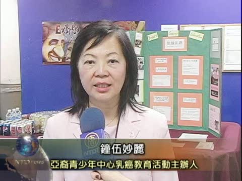 【新唐人2010年7月1日訊】據統計,每8位婦女就有1位患上乳癌,6月29日位於洛杉磯聖蓋博市的亞裔青少年中心,舉辦年度乳癌教育活動,主辦人鐘伍妙麗呼籲華人婦女不要忽視乳癌定期檢查,及早發現,及早治療。請看來自洛杉磯的報導。