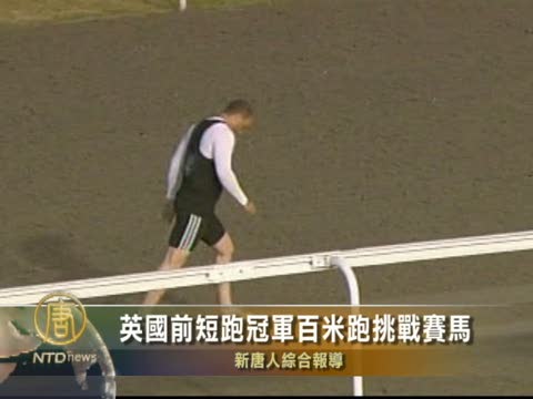 【新唐人2010年7月2日訊】英國前短跑冠軍傑米•巴爾奇(Jamie Baulch),在星期三(6月30號),挑戰賽馬佩普勒頓•布魯克(Peopleton Brook),比賽百米跑,讓我們去看看他們誰跑得快。
