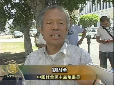 中國社會民主黨秘書長劉因全:「七月一號是共產黨的建黨日,我們利用這個機會來焚燒黨旗,向世界人民表示,共產黨它是反人類的政黨,是一個給中國人民、世界人民不斷製造災難的政黨。」