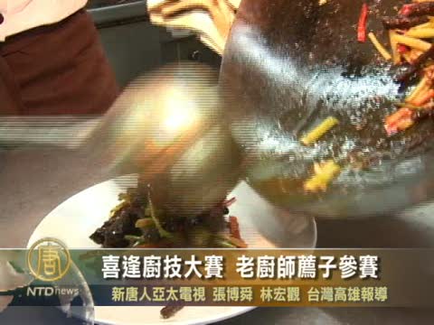 【新唐人2010年7月3日訊】一位在高雄鳳山市老牌川菜館的老廚師,在看到全世界中國菜廚技大賽路燈旗廣告後,鼓勵學藝11年兒子報名參賽,年輕廚師謝仁豪說,希望能讓世界看見中華烹飪藝術文化。
