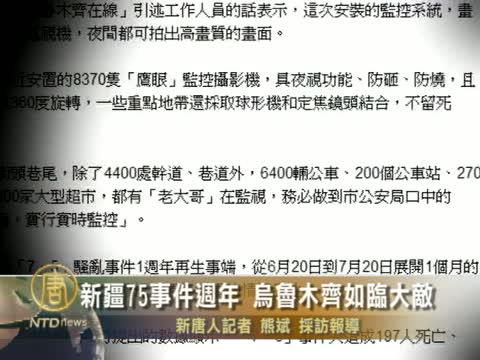 【新唐人2010年7月4日訊】新疆「7.5」事件即將1週年,烏魯木齊近期戒備森嚴如臨大敵,街頭巷尾大量安置監控攝影機,公共場所到處有人監視和查包,烏魯木齊市民回憶去年「7.5」事件傷亡慘重,但是政府切斷網路,斷絕對外通訊,意圖掩蓋真相。
