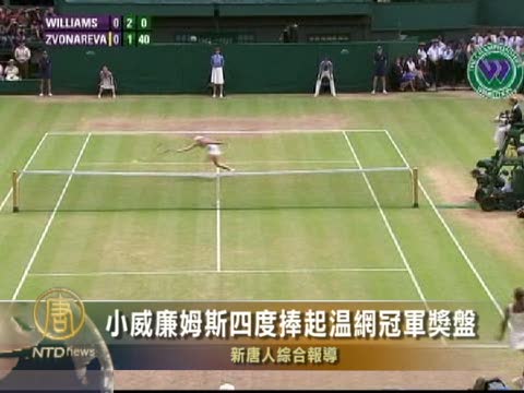 【新唐人2010年7月4日訊】美國網球名將小威廉姆斯星期六在溫布爾頓網球女單決賽中,戰勝了俄羅斯選手薇拉-茲沃納列娃,第4次奪得溫網女單冠軍。