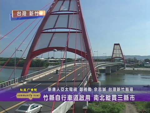 新竹縣長邱鏡淳:「在體委會的支援之下,海邊的部分十三公里多,已經準備完畢,已經建構完畢,現在準備再爭取,從頭前溪的部分,在湖邊的部分,在山邊的部分,陸陸續續會變 成一個,建構一個自行車網。 」
