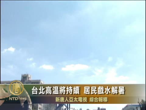 【新唐人2010年7月4日訊】臺北昨天飆高溫,攝氏38.6度平了歷年7月份的記錄,受到太平洋籠罩的影響,台灣這幾天依舊艷陽高照,不過有沒有可能再創高溫,氣象局表示得碰點運氣,今天的雲量比較多,機率恐怕不大,但是臺北30多度的高溫,還是讓戲水池,一早就擠滿了人。