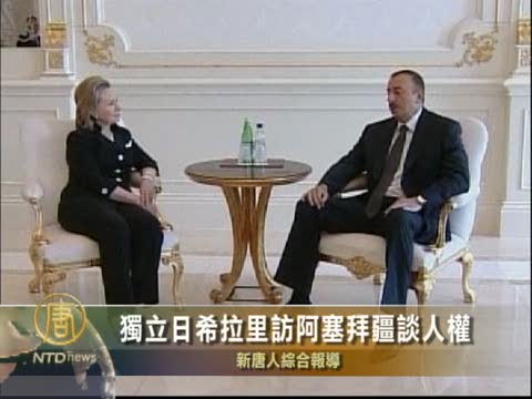【新唐人2010年7月5日訊】7月4日,在美國獨立日這天,國務卿希拉里克林頓訪問阿塞拜疆,與該國總統阿利耶夫舉行了會晤,主要商討了阿塞拜疆與鄰國亞美尼亞的關係,隨後,希拉里還對該國青年人談論了民主和人權等問題。