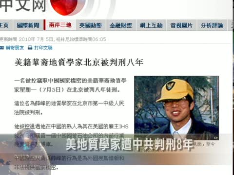 【新唐人2010年7月5日訊】北京中級人民法院7月5日判處美籍華裔地質學家薛峰8年徒刑,罰款近三萬美元。44歲的薛峰2007年在中國旅行時,被中共公安拘押,他被指為美國IHS能源顧問公司購買中國國營石油公司的商業資料數據庫。
