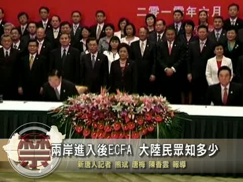 【新唐人2010年7月6日訊】兩岸已經進入後ECFA時期,本臺記者採訪了大陸民眾對於ECFA影響兩岸政經關係的看法,一般大陸民眾都不知道甚麼是ECFA。而大陸民主人士指出,在兩岸關係日益親近下,台灣將失去作為大陸民主自由橋頭堡的作用。