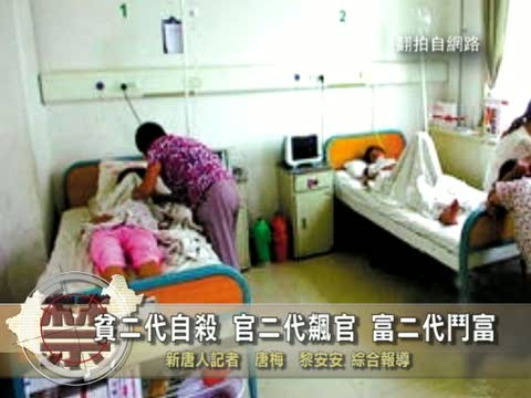 【新唐人2010年7月8日訊】如今的中國社會貧富日益懸殊,使得第二代的命運出現了天壤之別。富二代們鬥富炫富,招親選美,飆車撞人。官二代飆官、世襲爵位、腐敗弄權。而貧二代們求學無門、謀職無路、人生無望、厭世輕生,給當局敲響了警鐘。