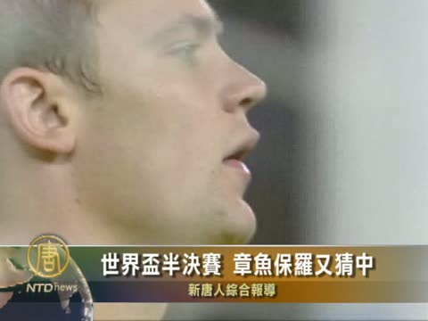 【新唐人2010年7月8日訊】星期三(7月7號),德國隊以0:1輸給西班牙隊,再一次驗證了德國章魚保羅,神奇般的猜球能力,也讓這只小精靈,被球迷們拜為“預言帝”。