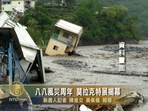 【新唐人2010年7月9日訊】颱風季節又快到了,去年八八風災重創南台灣,讓人記憶猶新,在風災即將滿週年前夕,莫拉克風災紀念特展今天在台灣博物館開幕,特展內容記錄保存了從歷劫到重建的見證。