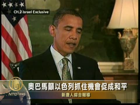 【新唐人2010年7月9日訊】星期四(7月8號),美國總統奥巴馬罕見的接受了一家以色列電視臺的採訪,表示達成一份中東和平協議是可能的,呼籲以色列抓住這個機會。