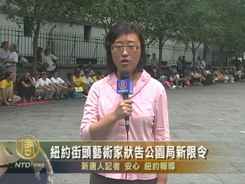 【新唐人2010年7月9日訊】紐約市公園局將出臺新的限製法令,控制曼哈頓的聯合廣場、砲臺公園、中央公園和高線空中公園內,街頭藝術家的數量在百人以內,引起街頭藝術家們的不滿,他們狀告公園局的限令不合法。請看報導。