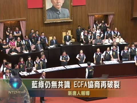 週五(9號)早上,朝野協商再度破裂。10時30分左右,在立法院長王金平宣佈開會後,民進黨立委為抗議國民黨將ECFA逕付二讀,齊聚主席臺前高呼口號後,集體離開議場,稍後並宣佈退出此次臨時會。