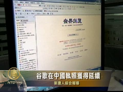 【新唐人2010年7月10日訊】7月9日,谷歌公司發佈一份簡短的公告,其在中國的營運執照得到續期,谷歌公司將繼續向中國客戶提供網絡搜索和本地產品服務。
