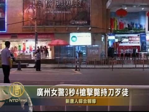 【新唐人2010年7月10日訊】星期三(14號),中國廣州一名便衣女警在3秒鐘內,向一名手持剪刀挾持人質的罪犯連開了四槍,將歹徒擊斃,人質得到解救。