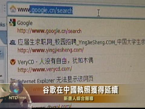 【新唐人2010年7月11日訊】星期五,谷歌公司發佈公告,表示公司在中國的搜索網站執照得到更新。