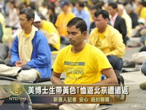 【新唐人2010年7月11日訊】就讀於美國名校哥倫比亞大學計算機系的印度裔博士生蘇曼.斯里尼瓦桑(Suman Srinivasan),在6月底應邀前往北京參加學術會議。然而,只因身上帶了一件印有“法輪大法”字樣的T恤衫,他被北京警察審問3個多小時,而後被立即遣返回美國。請看報導。