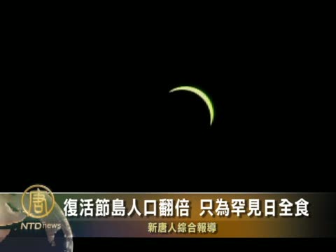 【新唐人2010年7月12日訊】星期天(7月11號),一次罕見的日全食,橫穿南太平洋。作為唯一能看到這一奇景的有人居住的陸地,數千人湧向復活節島(Easter Island),讓島上的人口數量整整翻了一番。