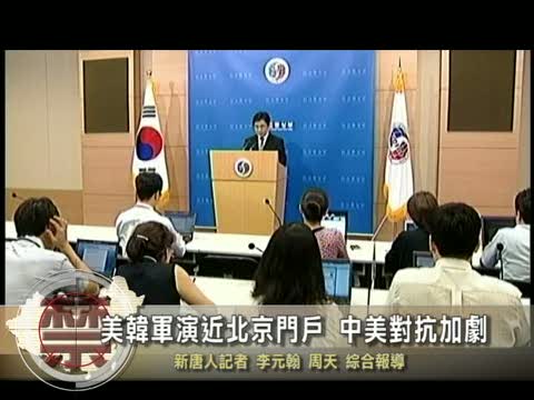 【新唐人2010年7月12日訊】經過一個多月的各方角力,聯合國安理會7月9號通過主席聲明,採取不點名的方式譴責擊沉南韓的天安艦。另一方面,美國和南韓計劃在黃海舉行聯合軍事演習。由於演習地點接近北京、天津門戶地區,中國表示強烈反對。外界輿論指出,天安艦事件正在加劇 中美對抗。