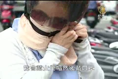 民眾:「白天一定要擦防曬,然後擦兩層,一層是凝固狀的,一層是比較粉底的東西,可以的話再擦一個粉餅。腳,夏天的話會很曬,就會擦防曬噴霧。騎機車的時候,我會戴安全帽然後戴口罩,最好是戴太陽眼鏡,它可以防風、又可以防紫外線 」