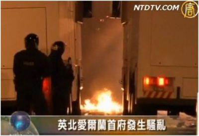 【新唐人2010年7月12日訊】北愛爾蘭首府貝爾法斯特從11日深夜發生騷亂事件。大約200名滋事分子分別在2個地點朝警方投擲汽油彈與石塊。造成27名警察受傷,其中3人受到槍傷,但傷勢並不嚴重。
